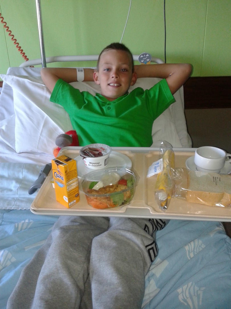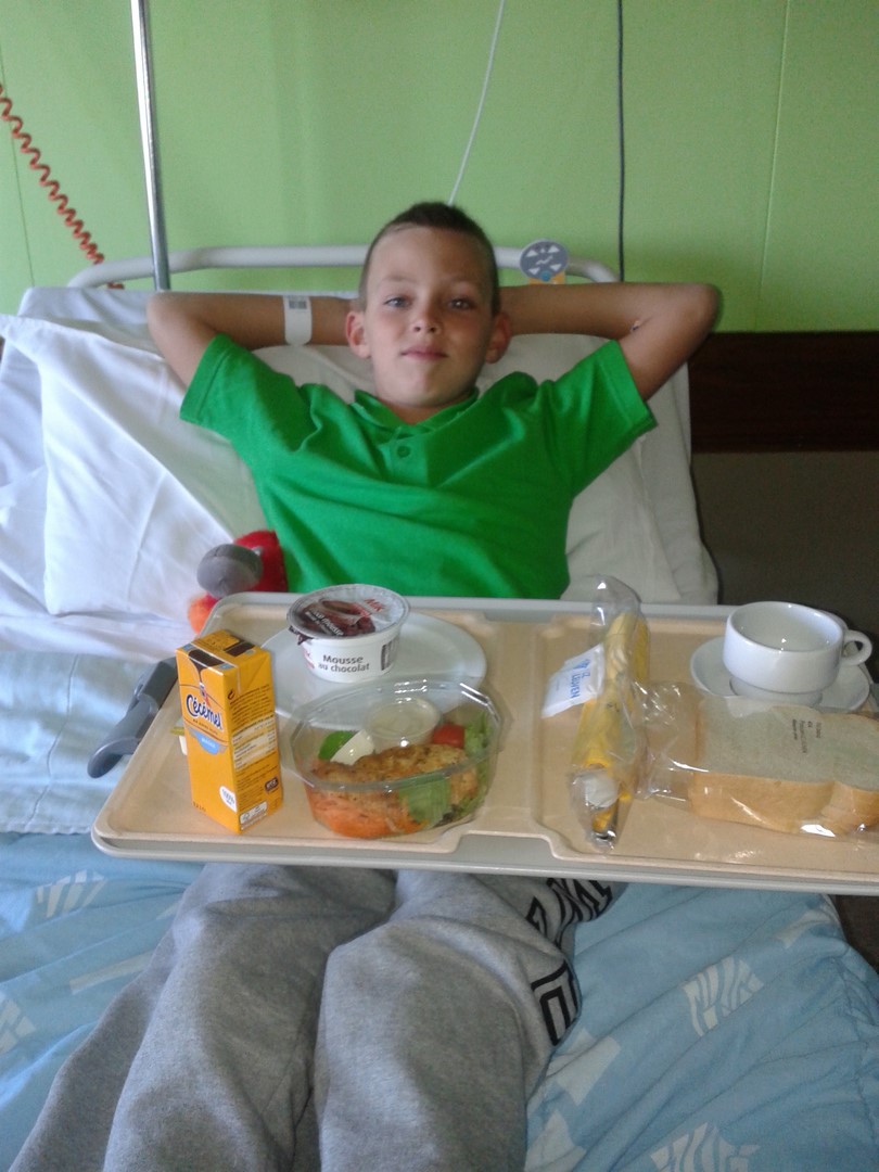 Vanavond heb ik boterhammen met sla en kip gekregen. Tot 00.00u mag ik nog eten en drinken en dan is het gedaan. Morgen om half 8 beginnen ze eraan en de dokter zei vandaag dat ze hopen om 15.00u klaar te zijn. Een spannende dag dus.